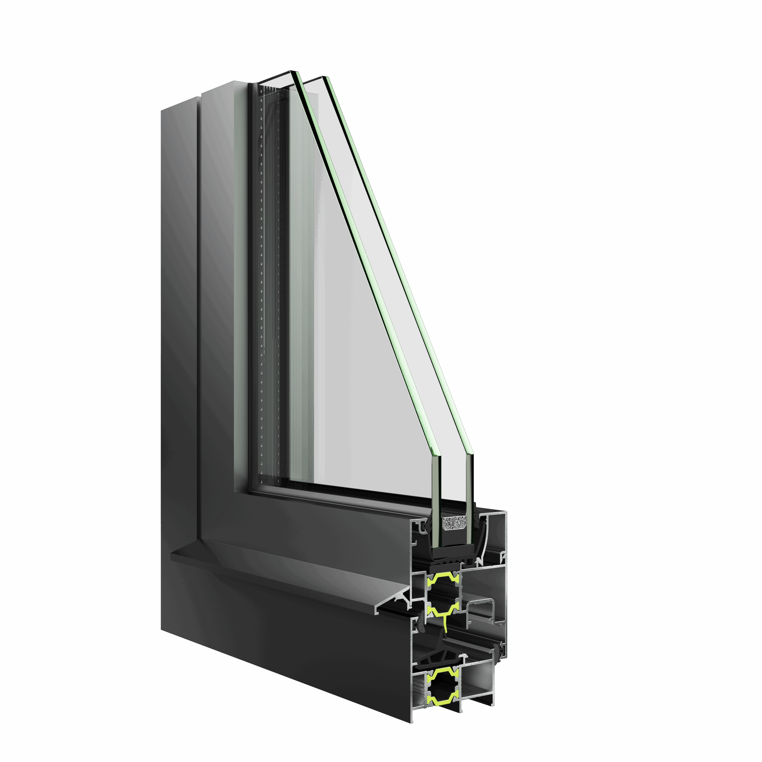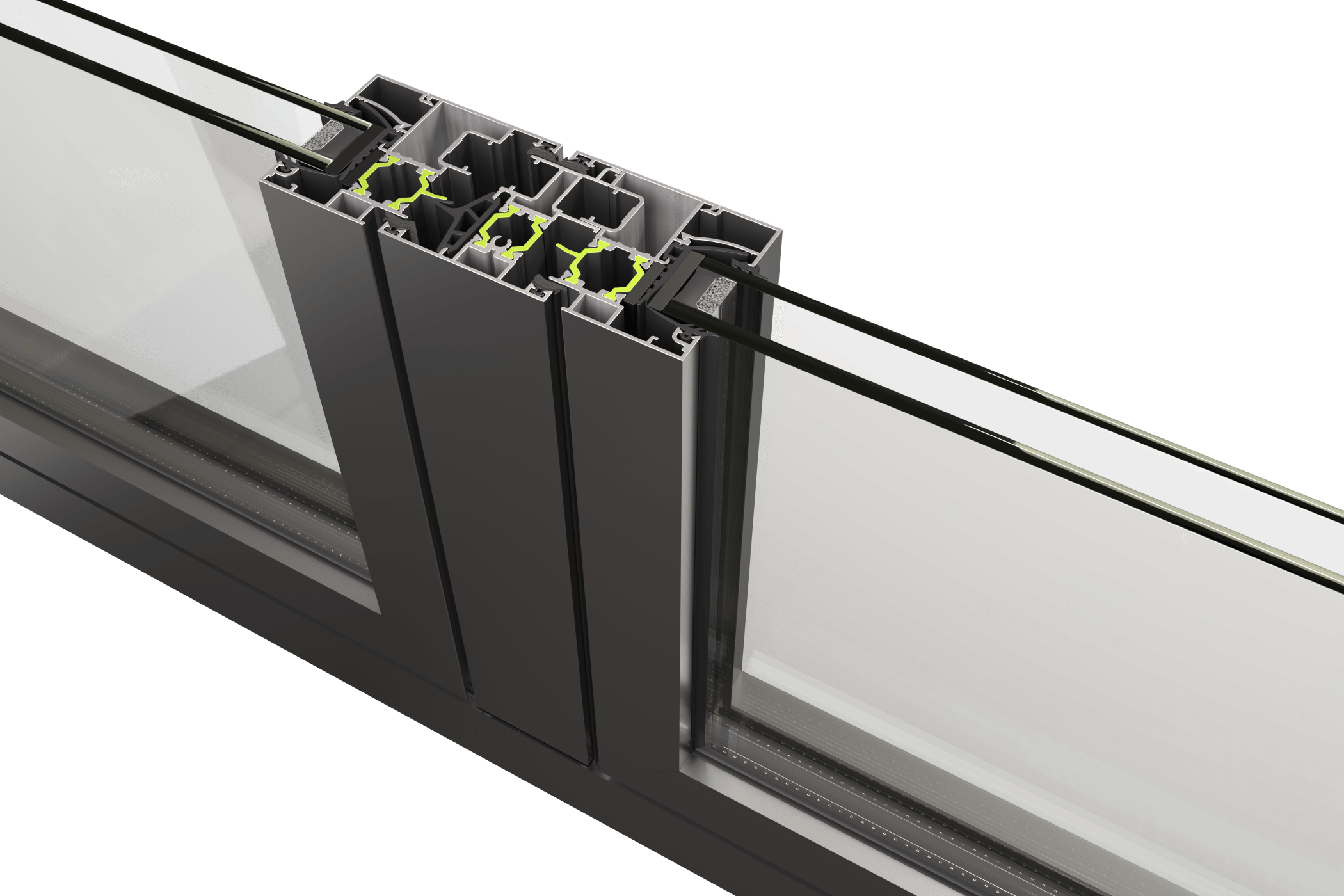 Η θερμομόνωση των προφίλ επιτυγχάνεται μέσω πολυαμιδίων 20 mm σε φύλλο και κάσα, εξασφαλίζοντας αποτελεσματική προστασία από θόρυβο και θερμικές απώλειες.