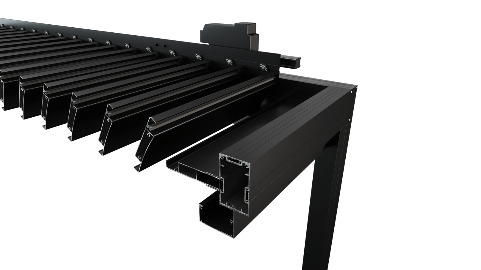 Δυνατότητα επιλογής διχρωμίας: διαφορετικό χρώμα για το πλαίσιο και τις κολώνες, και ξεχωριστή απόχρωση για τα πτερύγια της πέργκολας.